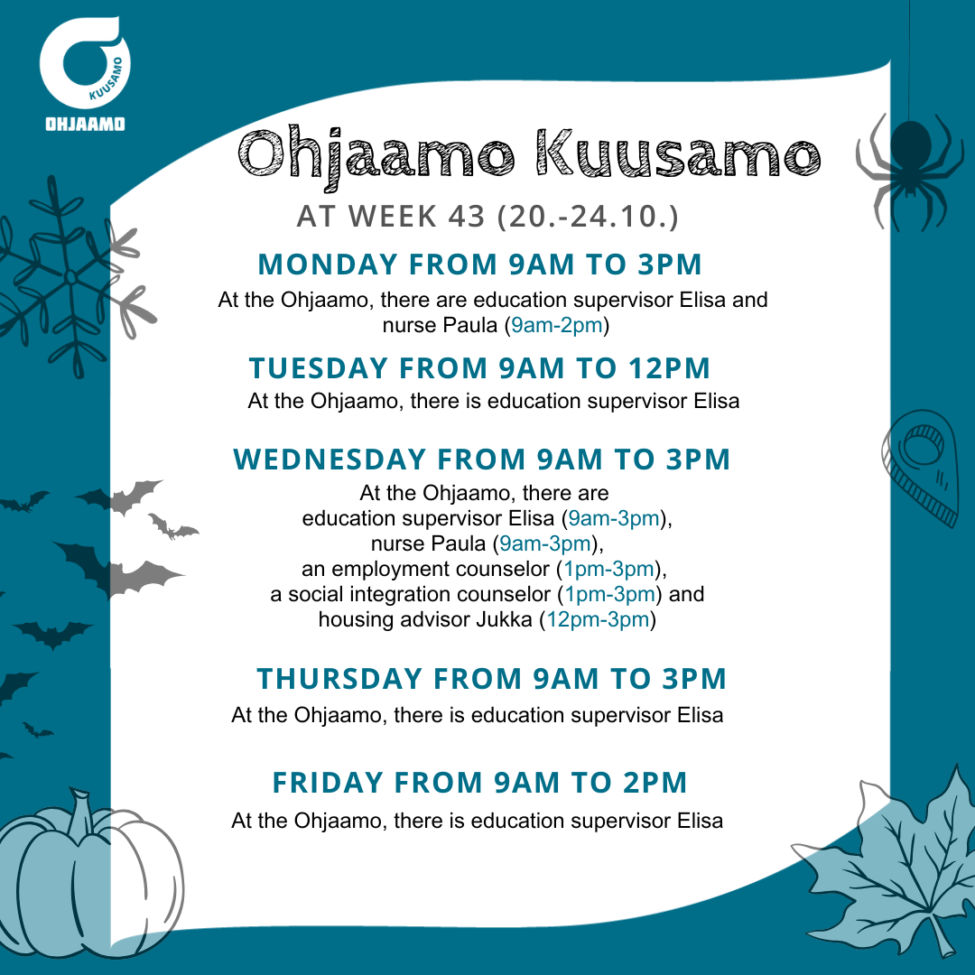 Young people under the age of 30 can access various services in one place. Kuusamo's Ohjaamo provides information, support, and guidance on topics such as employment, education, and everyday life management. If you're unsure where to begin, start with Ohjaamo!"