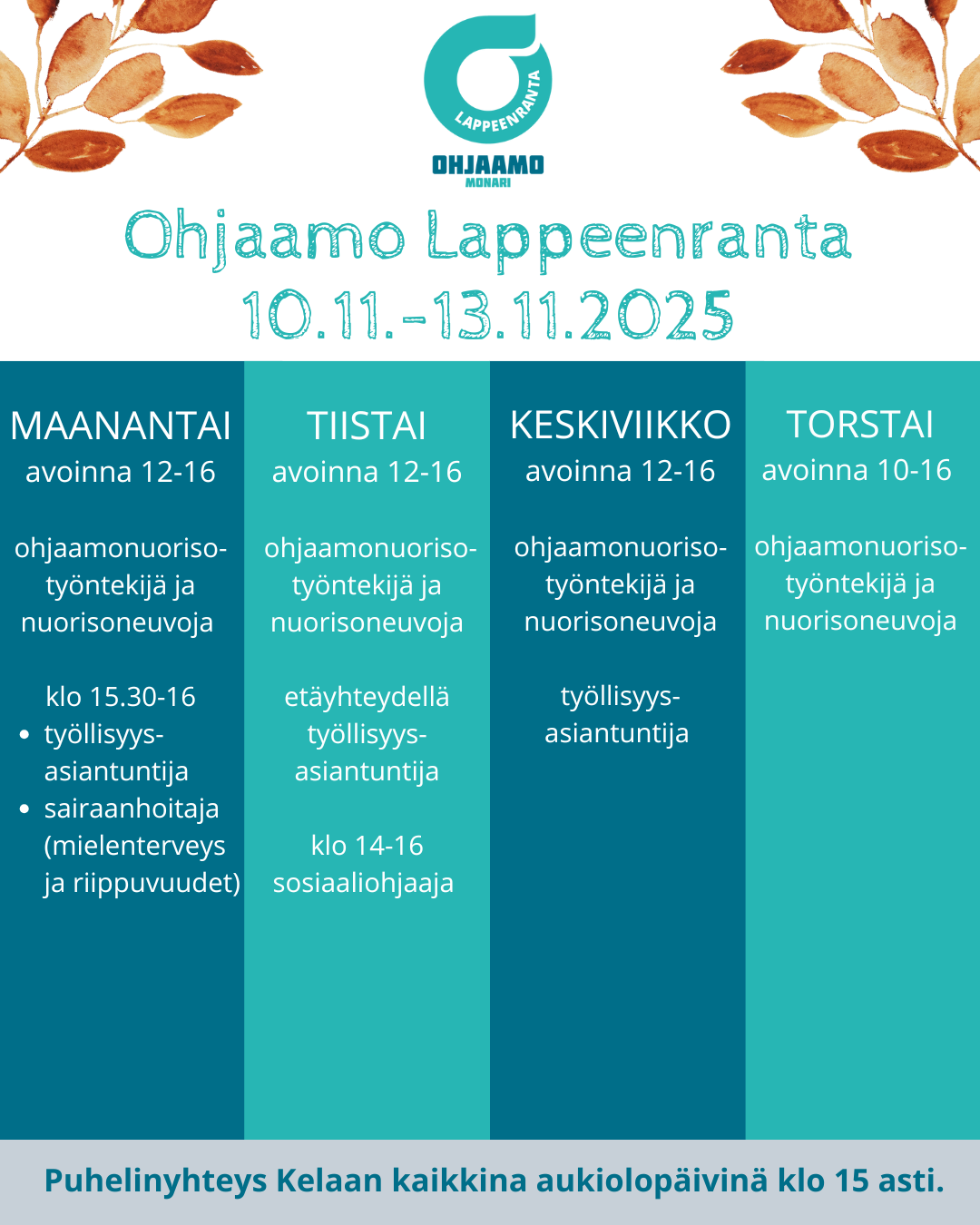 Ohjaamo Lappeenrannan ohjelma 10.11.-13.11.2025
