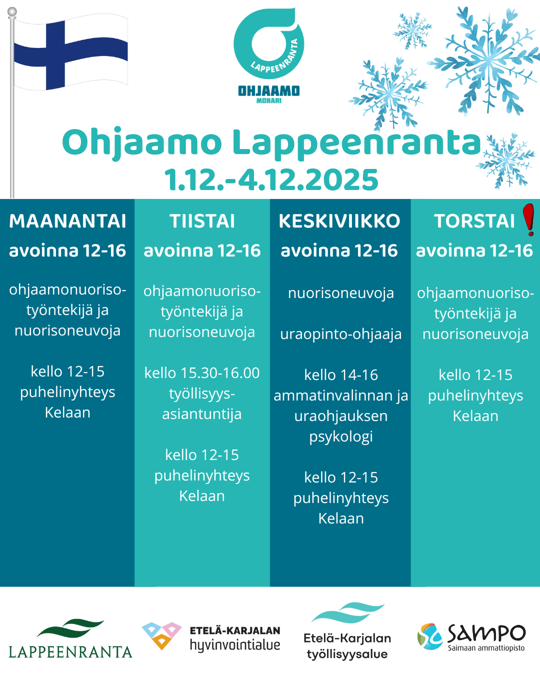 Ohjaamo Lappeenrannan ohjelma 1.12.-4.12.2025