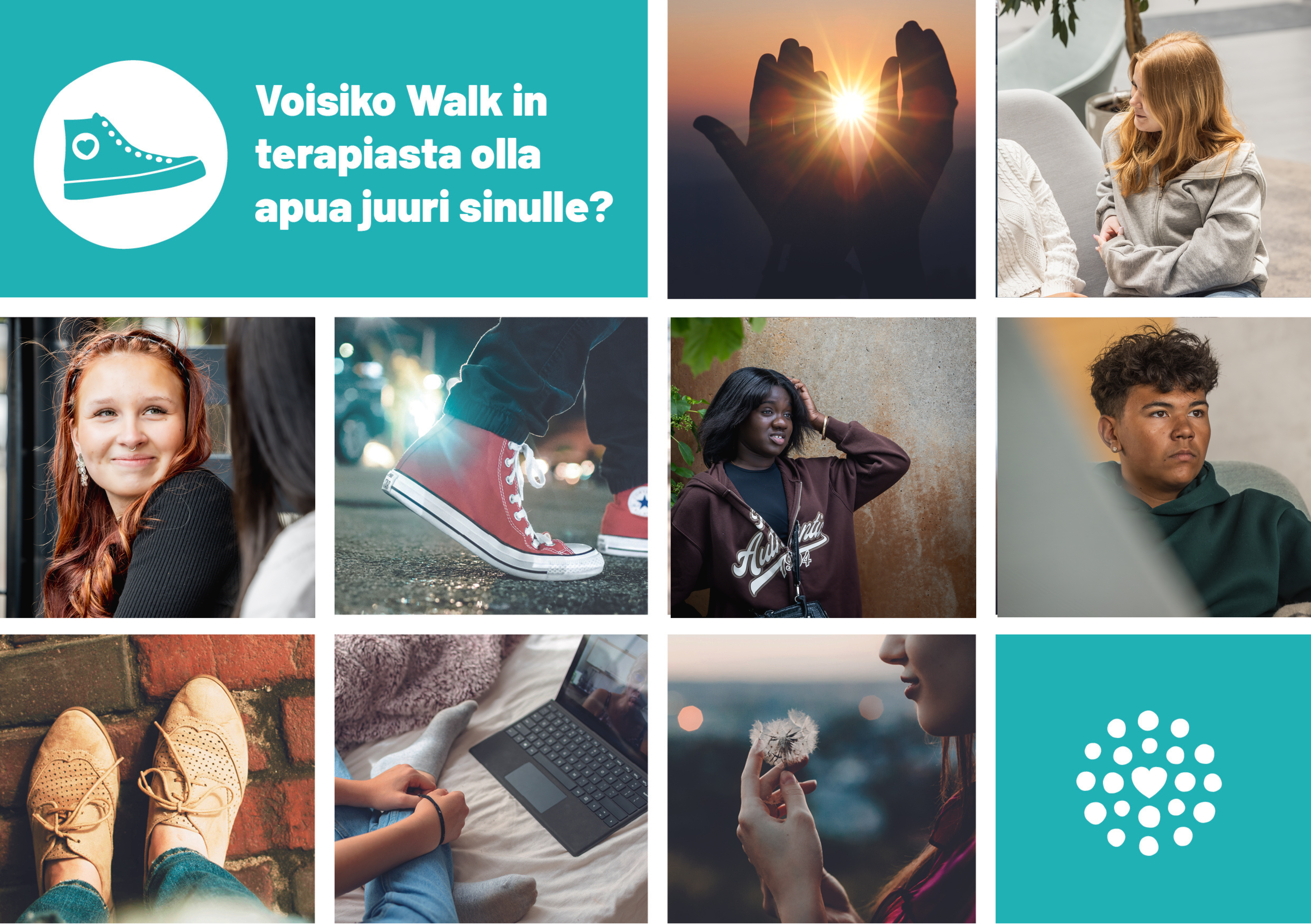 • Walk in terapia on käynti kerrallaan -keskusteluapua. Voit käydä useammankin kerran, terapeutti voi kuitenkin vaihtua eri kerroilla.