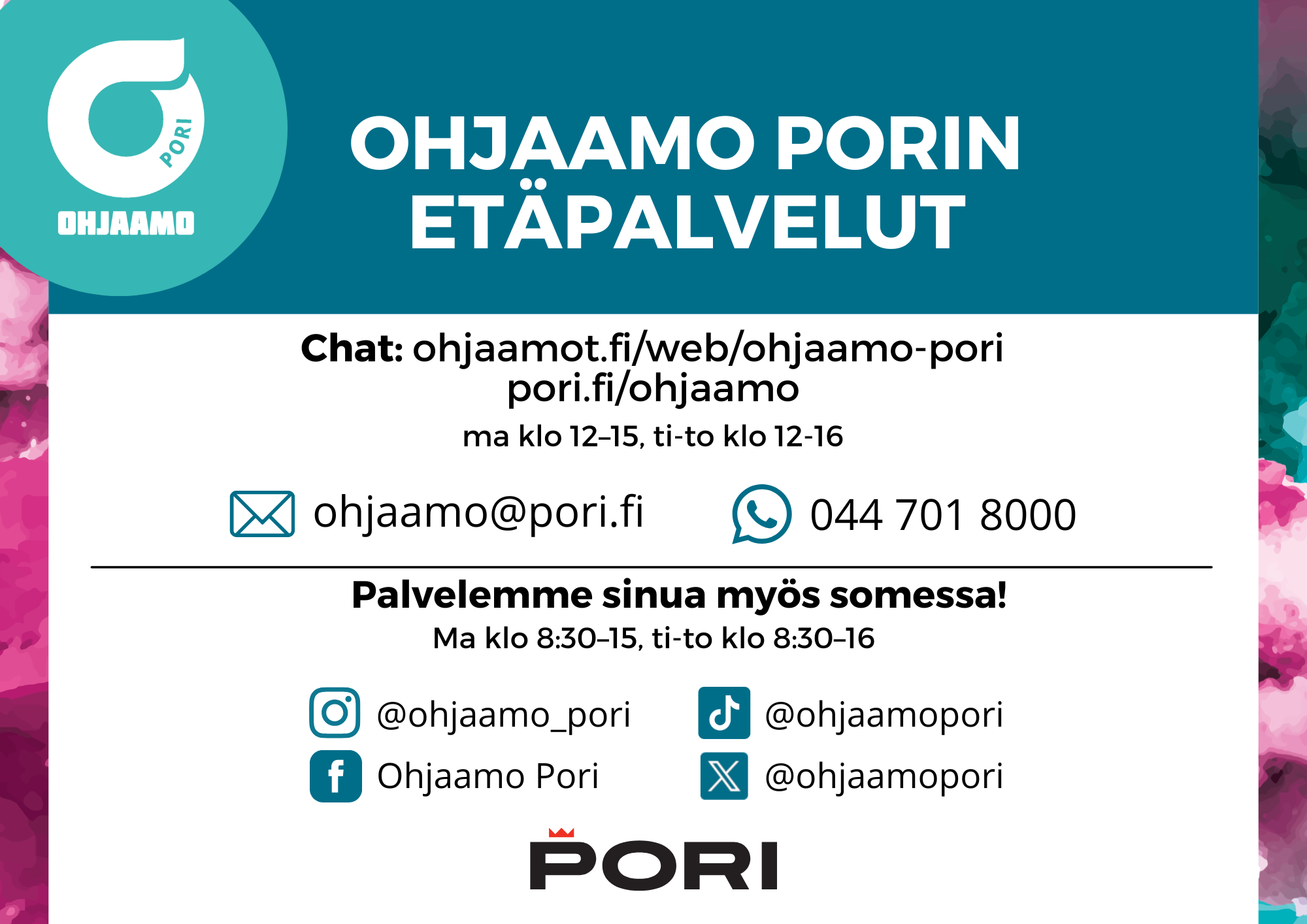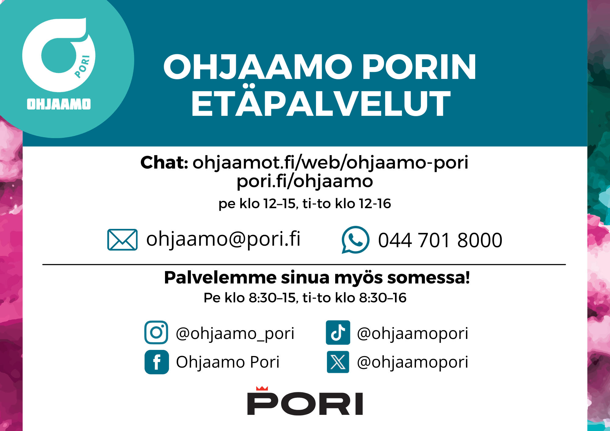 Mahdollisista muutoksista tiedotetaan Ohjaamo Porin somessa.