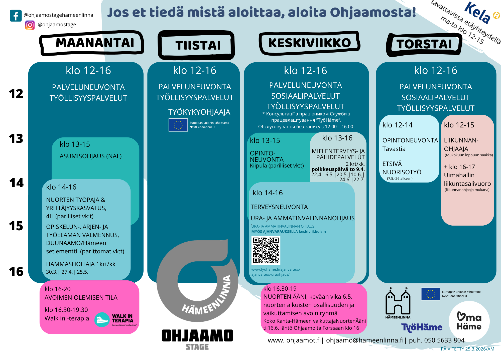 Nuorten aikuisten tieto-, neuvonta ja ohjauspalvelu avoinna ma-to klo 12-16