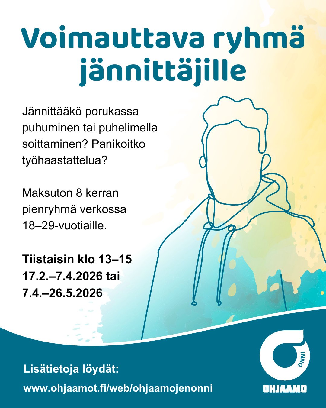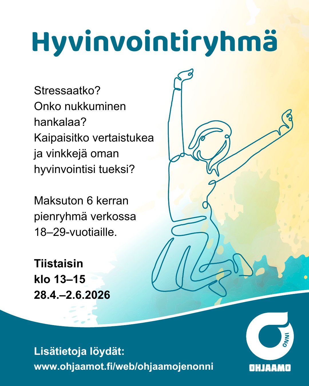 Tiistaisin 3.3.-31.3.2026 (5 kertaa) klo 16.00–17.30 Ohjaamon ryhmätilassa, os. Turuntie 4.