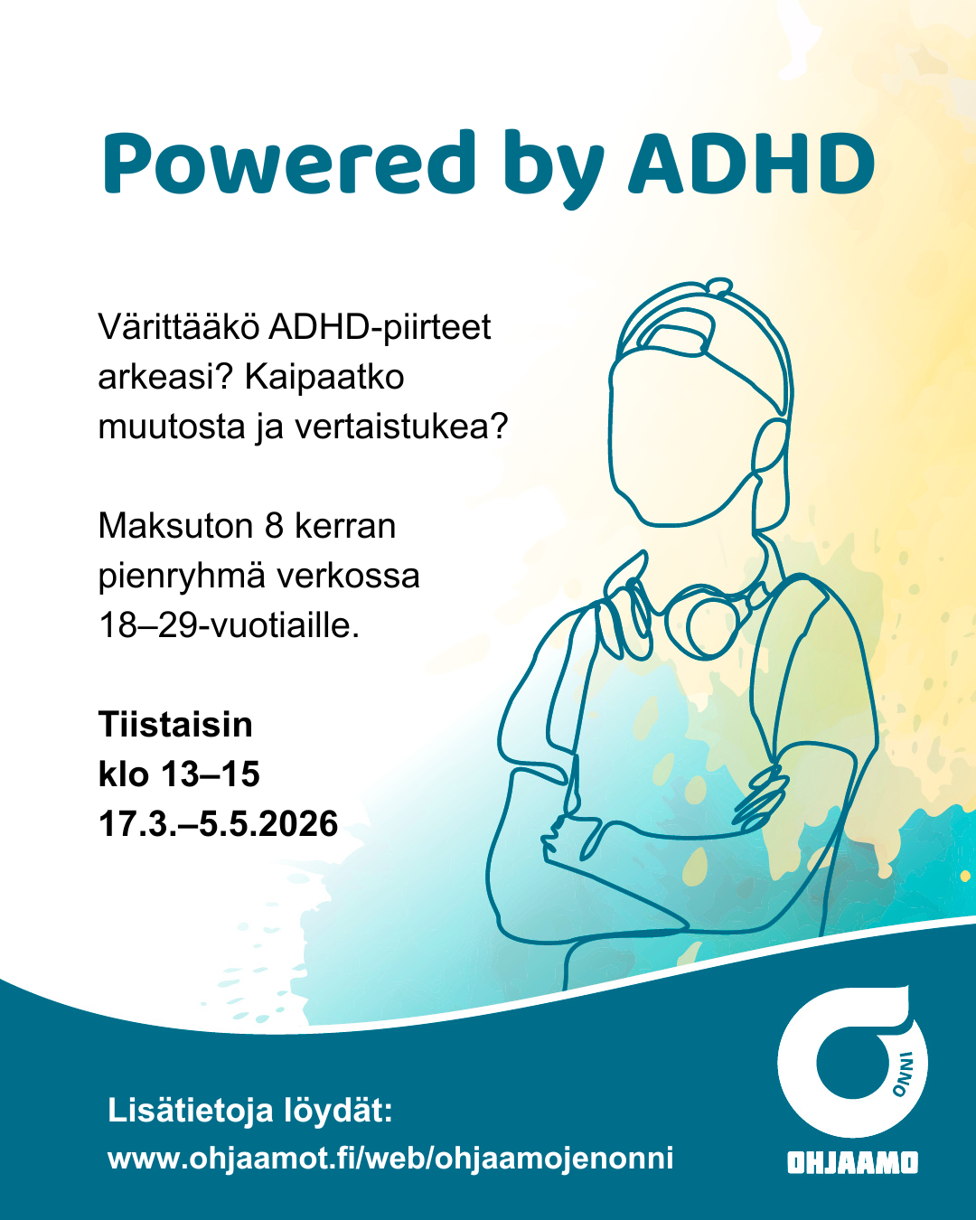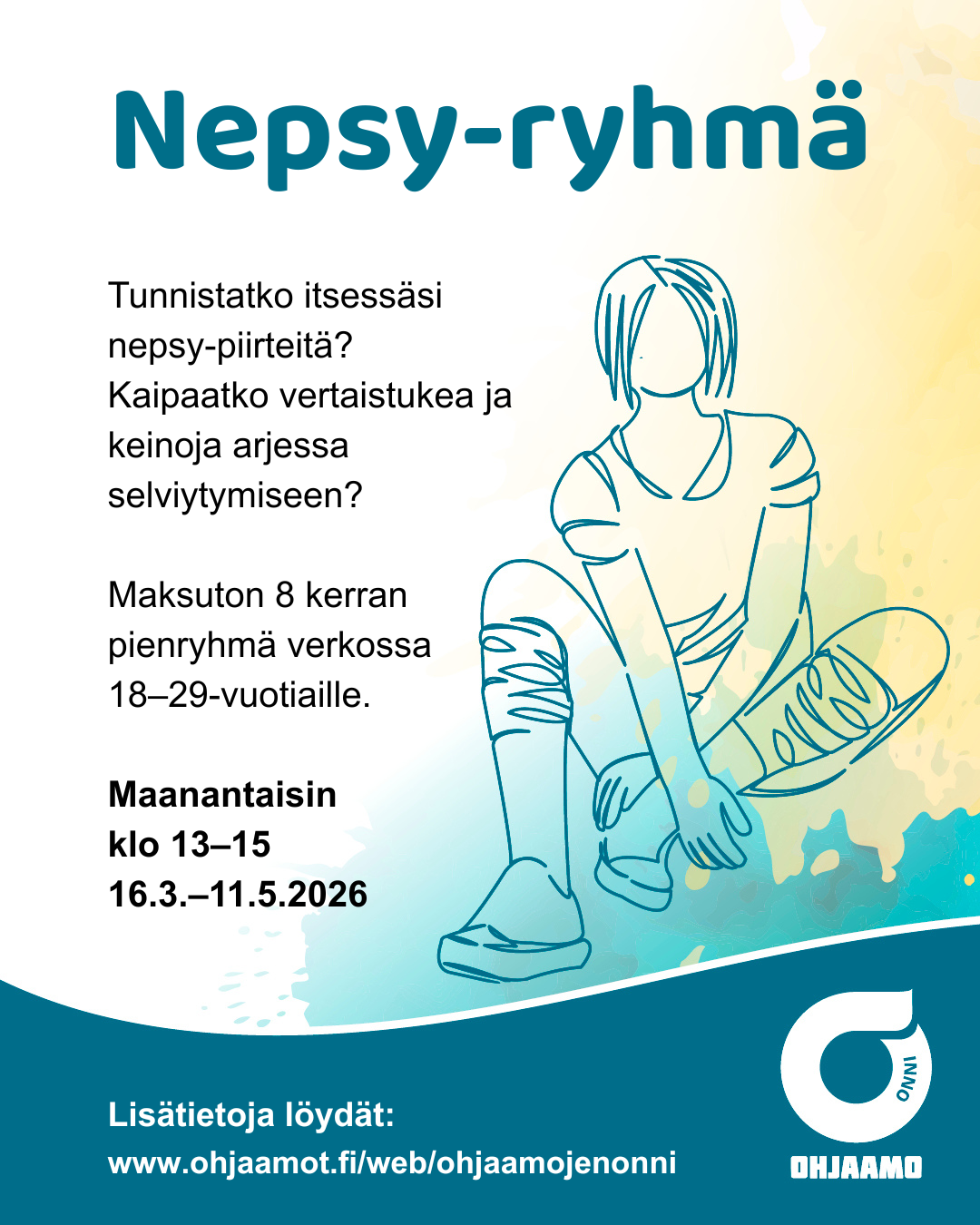 - avoimia tuokioita erilaisista hyvinvoinnin, arjenhallinnan ja neurokirjon teemoista, joihin voit osallistua anonyymisti.